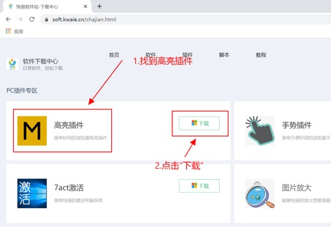 3. 进入到工具下载页面后,找到”高亮插件“,使用鼠标点击右侧的”下载“按钮,如图3所示