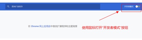 11. 进入扩展程序界面后,使用鼠标打开右上角的”开发者模式“按钮,如图14所示