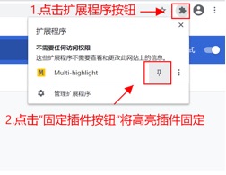 15. 然后点击浏览器右上角的扩展程序按钮, 会打开已安装的扩展程序,然后点击高亮插件右侧的”固定插件按钮“,如图18所示
