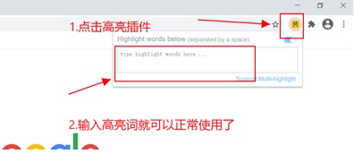 16. 固定完插件之后,鼠标点击浏览器右上角的高亮插件,在高亮词输入框里输入高亮词即可开始使用高亮插件,如图19所示